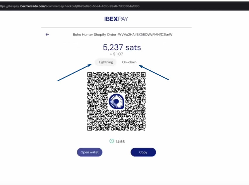 YA ESTÁ, eso es todo. Ahora cualquier cliente podrá pagarte e bitcoin y podrá tambien eligir si pagar con lightning u on chain, Ibex genera dos QR diferentes segun que el cliente elija Lightning u onchain.