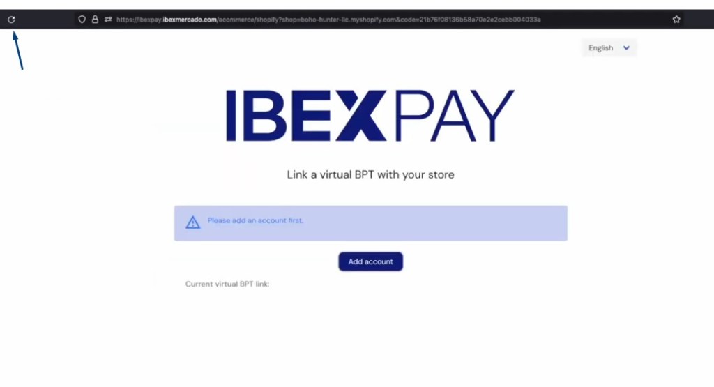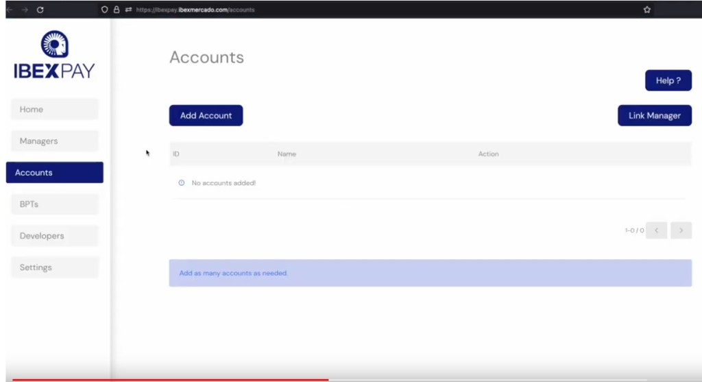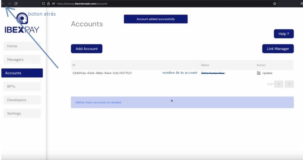 -se abrirá la pagina de Ibexpay, haz clic en ADD ACCOUNT