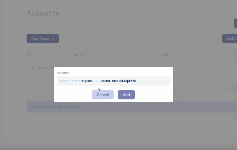 -Pon un nombre a tu cuenta, por ejemplo el nombre de tu negocio. El nombre que quieras, no es importante.Haz click en «Add»